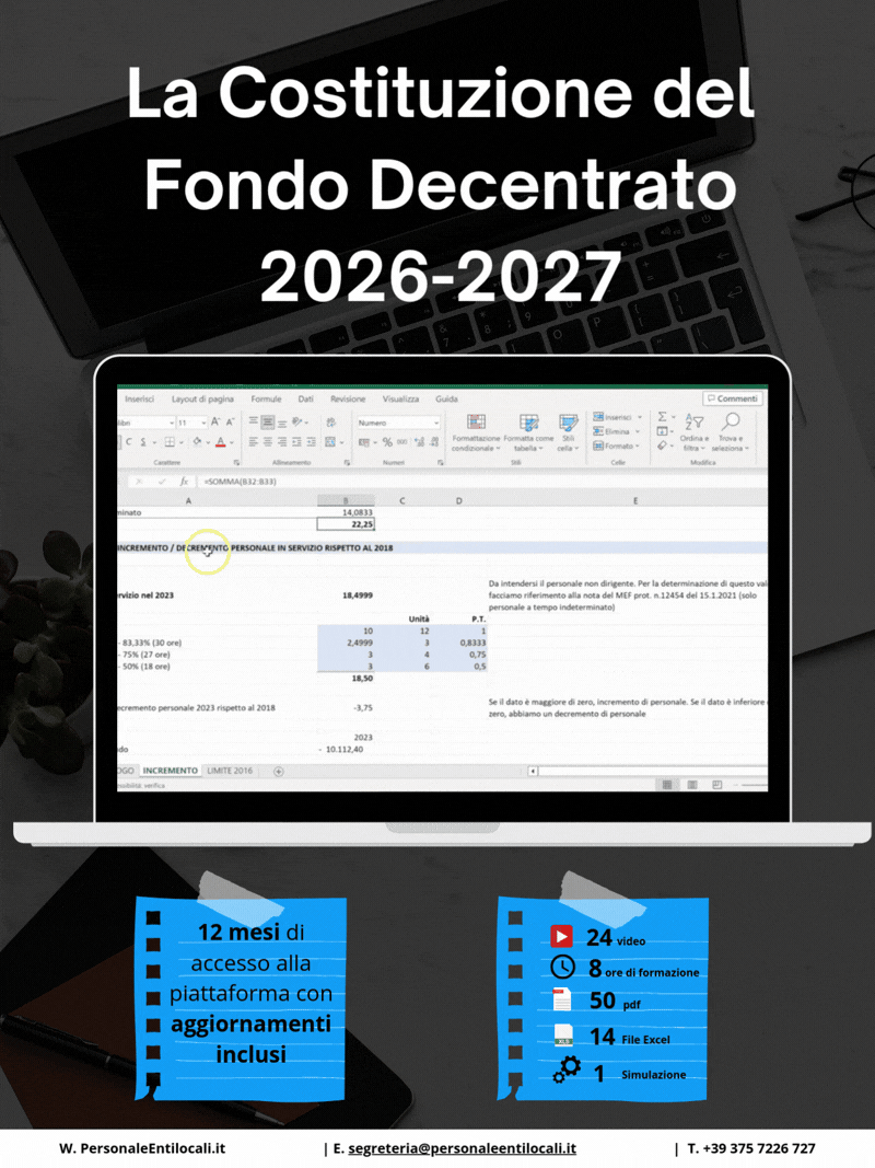 Unisciti alle altre Pubbliche Amministrazioni che hanno accesso alle risorse Video, Pdf e simulazioni Excel esclusive per acquisire le competenze necessarie per procedere alla costituzione del fondo decentrato.